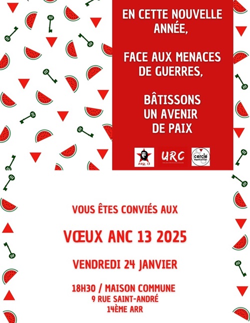Signe annonciateur de bonne nouvelle enfin ? Honneur et joie en tout cas. Le premier coup de fil de l'année 2025 m'a été donné par Georges Ibrahim Abdallah pour s'excuser (sic !) de ne pas avoir réussi à nous joindre hier pendant le réveillon, pour nous souhaiter que 2025 soit meilleure que 2024 et terminant par « embrasse fort tous les camarades de l'ANC » ...