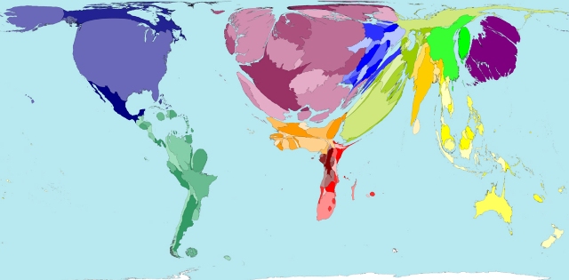 Sur cette carte la surface des pays a été modifiée afin de refléter le poids dont chacun dispose en termes de droits de vote au sein du FMI. Comme le fait remarquer le CADTM, « la Belgique (10 millions d’habitants) occupe une surface supérieure à celle de pays comme le Brésil (qui a pourtant une population 18 fois plus importante et un territoire 279 fois plus étendu), le Mexique, l’Indonésie ou la République démocratique du Congo (6 fois plus d’habitants que la Belgique et un territoire 77 fois plus étendu).