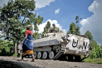 "Les officiels de l’ONU ont dit qu’ils n’avaient pas assez de personnel pour repousser les rebelles et qu’ils craignaient des dommages collatéraux, mais beaucoup de Congolais ont rendu leur propre verdict. Mercredi, des émeutiers de Bunia, au nord de Goma, ont mis à sac les quartiers du personnel des Nations Unies."