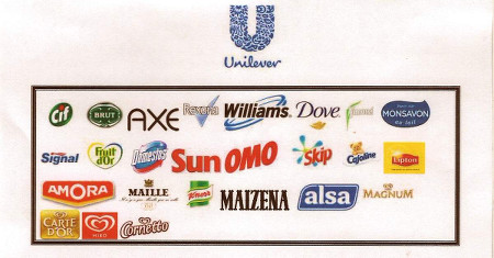 Toutes les marques du Groupe UNILEVER sont identifiables avec ce logo :