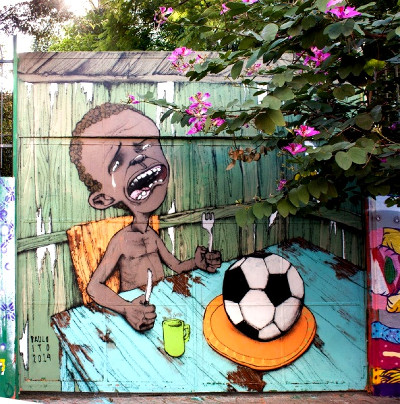 Fresque murale : la coupe du Monde vue par un brésilien.