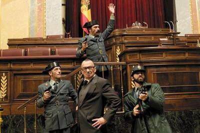 36. Le 23 février 1981, la jeune démocratie espagnole fait face à une tentative de coup d’Etat militaire orchestrée par le lieutenant-colonel Antonio Tejero. L’Assemblée nationale est prise d’assaut par près de 300 gardes-civils et 100 soldats au moment de l’investiture du candidat à la Présidence Leopoldo Calvo-Sotelo. L’armée occupe divers points stratégiques de la capitale et du pays. Le roi Juan Carlos intervient à la télévision sept heures plus tard pour condamner la tentative de putsch : « La Couronne, symbole de la permanence et de l’unité de la Patrie, ne peut tolérer en aucune façon des actions ou attitudes de personnes qui prétendent interrompre par la force le processus démocratique que la Constitution votée par le peuple espagnol a déterminé à travers le référendum ». Cette intervention renforce l’image du Roi, considéré comme le sauveur de la démocratie.
