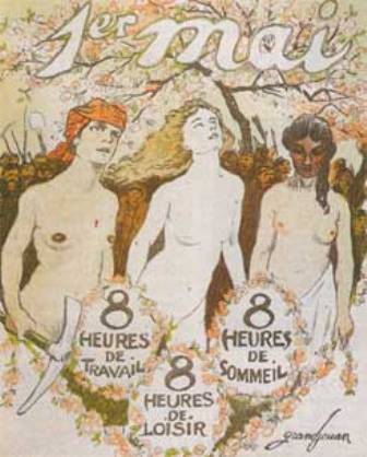 C’est à Paris l’année même du premier centenaire de la Révolution française que blanquistes et guesdistes tiennent au 42, rue Rochechouart, salle des Fantaisies parisiennes, le deuxième congrès de l’Internationale socialiste. Ce congrès décide qu’il sera « organisé une grande manifestation à date fixe de manière que dans tous les pays et dans toutes les villes à la fois, le même jour convenu, les travailleurs mettent les pouvoirs publics en demeure de réduire légalement à huit heures la journée de travail et d’appliquer les autres résolutions du congrès. Attendu qu’une semblable manifestation a été déjà décidée pour le 1er mai 1890 par l’AFL, dans son congrès de décembre 1888 tenu à Saint Louis, cette date est adoptée pour la manifestation. »