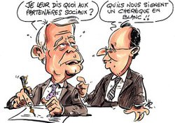 Le vendredi 11 janvier au soir, le Médef et la CFDT signent un « accord sur l’emploi ». « Un tournant majeur du quinquennat de François Hollande », salue Libération, « une première victoire sur la scène nationale », une « négociation [qui] apporte une bouffée d’air au dialogue social dans un pays au bord de l’asphyxie », etc.