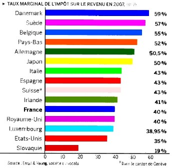4] Légaliser la fraude fiscale : Le titre de la Tribune du 6 Avril est : « Sarkozy baissera de 5 points l’impôt sur les sociétés ». On est donc toujours dans cette recherche de baisse d’un impôt présenté de manière mensongère comme pesant trop sur les groupes industriels. En fait derrière cette mesure, le candidat Sarkozy cherche à légaliser la fraude fiscale. Lors de la mini émeute de la gare du nord, l’ancien ministre de l’intérieur a déclaré qu’il était du côté de ceux qui payent leurs billets. Fort bien, il est pour condamner les fraudeurs à 2 euros, mais pas ceux qui fraudent 30 à 40 milliards d’euros. Comprenons, qu’en baissant l’impôt sur les sociétés, ils donnent raison à ceux qui déclarent contre les faits eux-mêmes, que l’impôt sur les sociétés est trop élevé. Il entérine la fraude fiscale comme étant la conséquence d’un impôt trop élevé...d’où sa proposition confirmée de baisser l’impôt sur les sociétés.