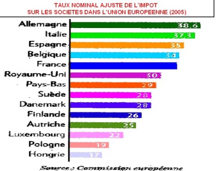 De la relativité il faut se saisir : La clef du mystère est toute simple et identique en termes de méthode à elle concernant le temps de travail. Partant de la proposition de Nicolas SARKOZY de baisser l’impôt sur les sociétés, car trop lourd : « Le député-maire de Neuilly (RPR), invité du Grand Jury -le Monde-L.CI, a placé l’allégement de l’IS en tète des baisses d’impôts qu’il propose, indiquant que le taux français est de 36 %, tandis que la moyenne européenne est de 32 %. Le même argumentaire figure en bonne place dans les tablettes du Medef qui se plaint que le taux français d’IS reste un des moins compétitifs d’Europe ». [4]