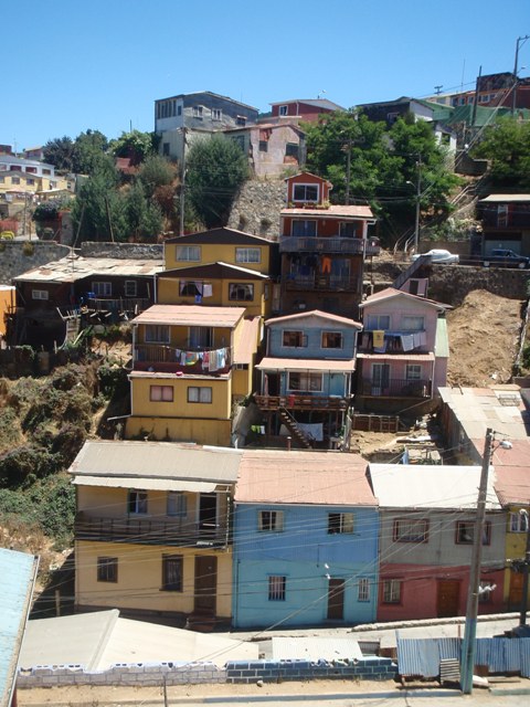 Deux jours et une nuit pour explorer cette ville, que du haut des collines nous pouvons embrasser du regard et qui s’étend à perte de vue en un immense amas de taches multicolores nous semble soudain dérisoire. C’était sans compter sur l’autre facette de cette ville : le port car derrière les collines peuplées d’artistes se cache une autre Valparaiso, celle des taudis et des quartiers où personne n’ose pénétrer, paradis de la petite délinquance et de la violence ordinaire.