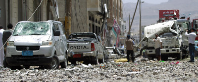 La guerre au Yémen a fait 944 morts et 3487 blessés selon l’OMS (Photo : un quartier de la capitale Sanaa touché par les frappes aériennes) | AFP