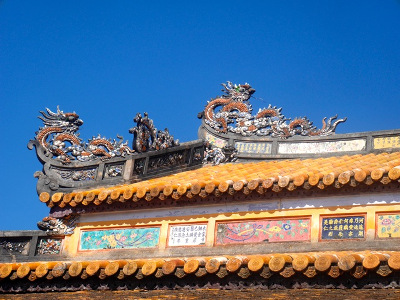 Depuis 1975 les vietnamiens reconstruisent à l’identique la citadelle, une enceinte de dix km l’entoure ainsi que des douves. Je dois avouer que le manque d’explications et de panneaux rend la visite difficile et qu’il est impossible de se repérer. On ne donne pas de plan à l’entrée mais par contre il y a des boutiques de souvenir dans tous les coins. Dans la salle des mandarins les touristes peuvent payer pour mettre un costume impérial et poser sur le trône !