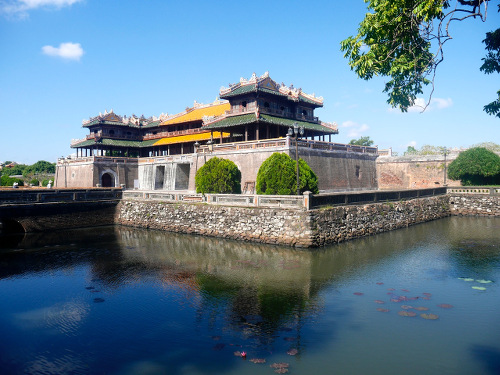 En 1802, l’empereur Gia Long, fondateur de la dynastie de Nguyên, a déplacé la capitale de Hanoï à Hué afin d’unir le nord et le sud du pays. Il a fait construire entre 1804 et 1833 la citadelle à l’intérieur de laquelle se trouve la cité interdite de l’empereur. En 1885, les français pillent la citadelle et dépouillent la cité de tous ses objets de valeur.