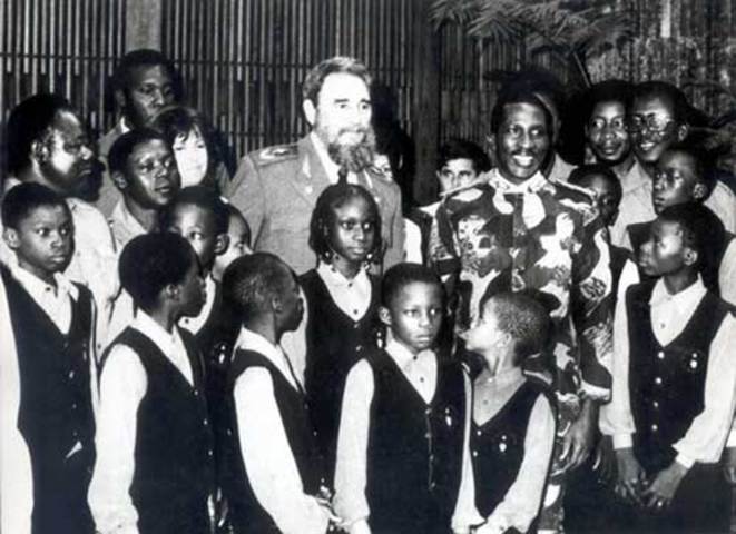 Thomas Sankara et Fidel Castro à l'Ile de la Jeunesse au milieu des jeunes Burkinabè