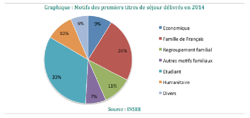 Le regroupement familial fait l'objet d'une autre confusion lorsque le discours politique en fait la principale source d'immigration en France, alors qu'il a représenté moins de 24Â 000 personnes immigrées en 2014 selon le ministère de l'Intérieur, soit 11Â % seulement du total (voir le graphique).