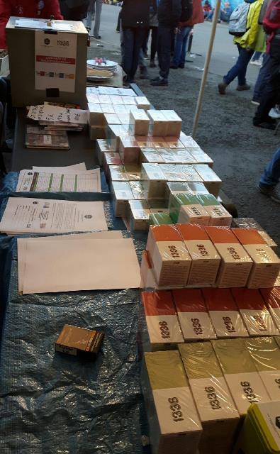 On ne pouvait pas les louper les deux boites en lutte ! En rentrant à gauche c’était SANOFI et en face les SCOP-TI avec leurs produits et leur urne pour le socio-financement. le résultat a été à la hauteur de ce que nous espérions : rien que sur ce stand : 4800€ de vente et plus de 800€ de socio-financement !