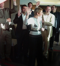 11 février 2008Les permanents de l’organisation patronale se mettent au goût du jour en matière de festivités . Dans les entreprises la mode du “lip dup” (double lèvres en français ou karaoké c’est-à -dire chanter en play back) s’est répandu à partir des Etats-Unis, il s’agit de tourner un clip video en un seul plan séquence. les salariés interprétent une chanson pour montrer la bonne humeur au travail. Dans un temps où se multiplient les suicides en entreprise, il était urgent d’innover.