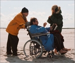Jean Dominique Bauby (joué par Mathieu Amalric) se sert (…) -